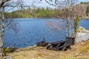 Kortare rundslinga som går från raststugan vid Svensbo gård och runt kärret i Skullebo naturreservat och halvvägs in hittar du ett vindskydd.