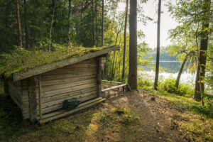 När vi var här var det svårt att se markeringarna längs stigen ner till vindskyddet och det var lätt att hamna fel.