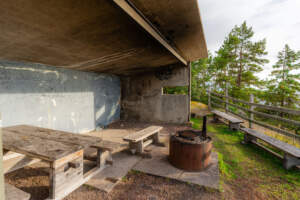 Vandring 2,4 km ToR upp på klipporna mot Vättern med strålande utsikt, badmöjligheter och spår av den gamla försvarsanläggningen att upptäcka.
