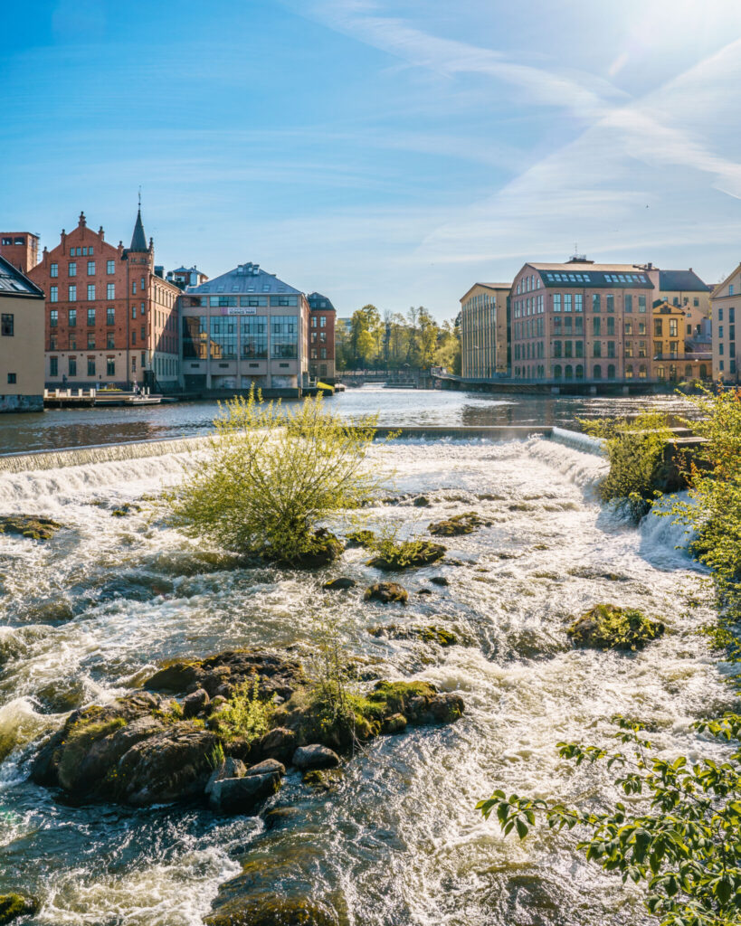Industriområdet är både vackert och mäktigt att se med forsar och ståtliga tegelbyggnader. Här kan du strosa omkring, kolla in Norrköpings Stadsmuseum (som enligt mig är stråt vassare än Arbetets museum) och äta middag på VY NKPG – en skybar högst upp i Strykjärnet.