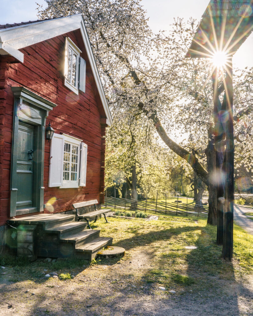 Fint fik där du kan sitta bland falu-röda stugor bredvid Motala ström ett stenkast från Rhododendrondalen.