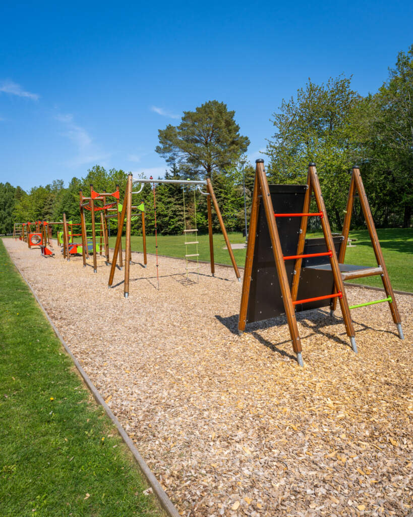 Hinderbanan på Råssnäsudden En fin rundslinga på 2,5 km som passar både promenader och löpning, långa partier går längs vattnet och det finns fler grillplatser.