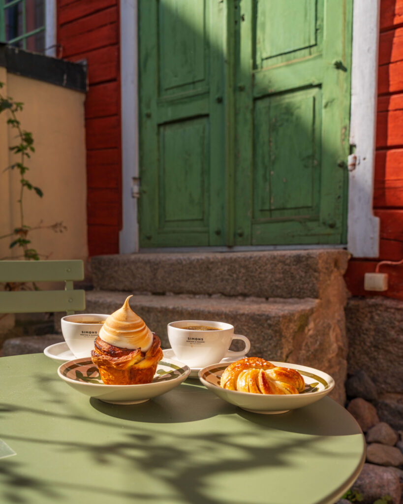 Centralt är Simons Rosteri & Bageri svårslaget en fin dag med god fika i den mysiga bakgården i ett av stadens äldsta kvarter. Stadsmissionens Café i den gamla Emanuelskyrkan från 1892 är också både gott och supermysigt, ifall ni hellre sitter inomhus. Riktigt bra fikabröd hittar ni även hos Bageri Normandie och Petra’s Cake, men båda har ganska små lokaler och kan därför passa bäst för take-away.
