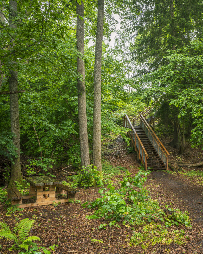 Nere i ravinen får du lite mer djungelkänsla. Kanske inte lika mycket som i Stjärnorpsravinen, men den är unik bland Linköpings stadsnära vandringsleder. Dessutom finns det mycket att se nere i ravinen, inte minst Jakobslunds järnbruk, ett rikt fågelliv med kungsfiskare och hackspettar, samt fåren som betar mot Ljungsjön på sommaren.
