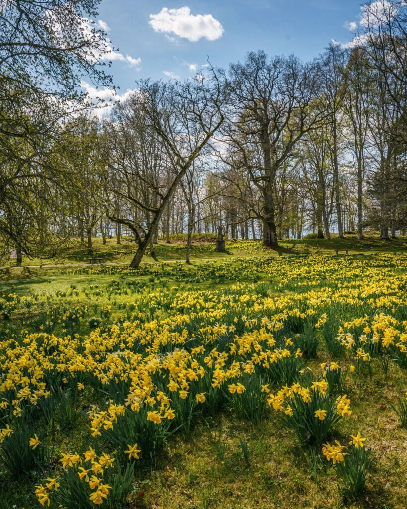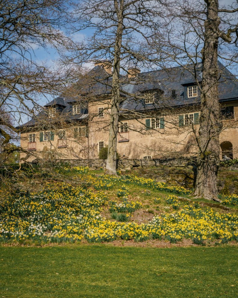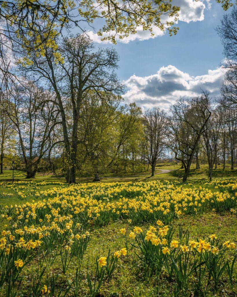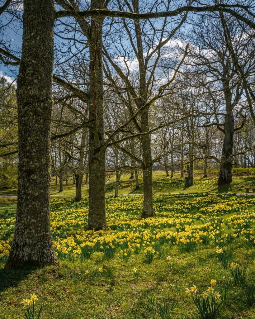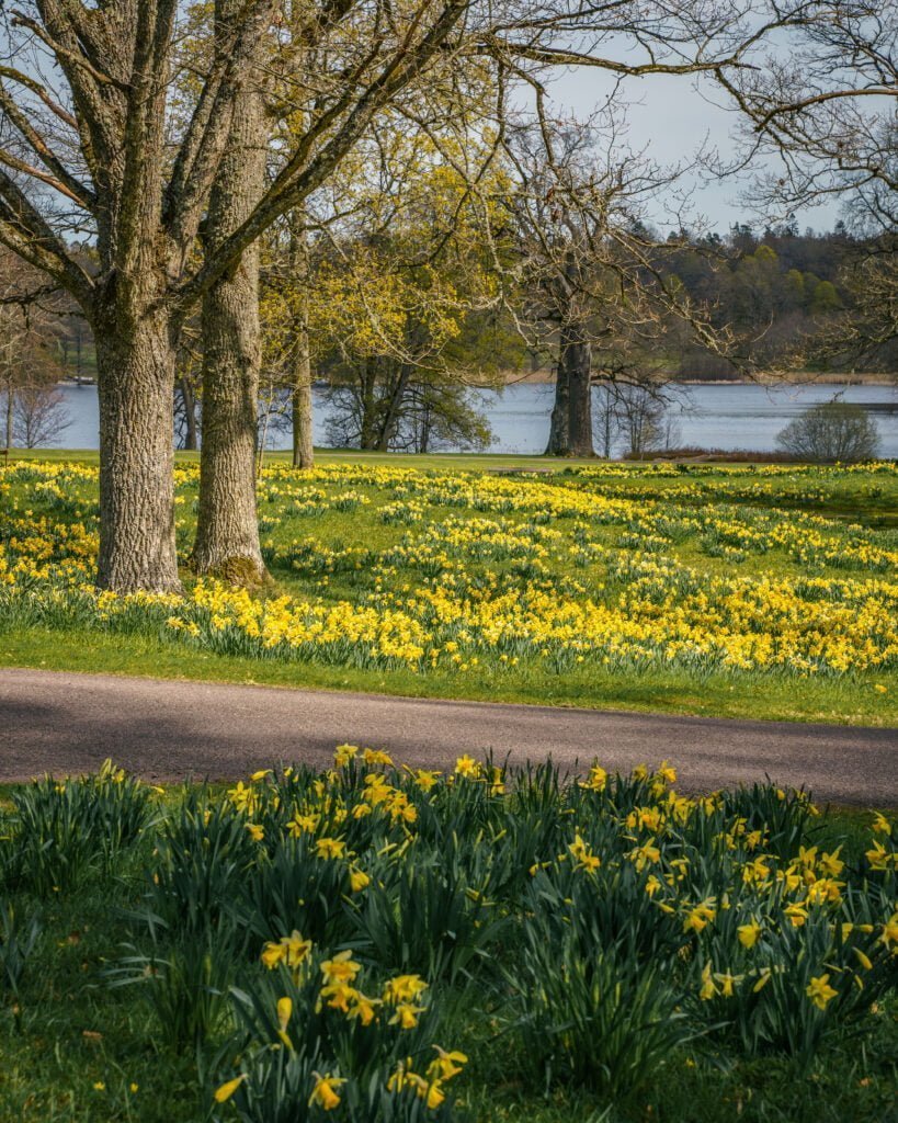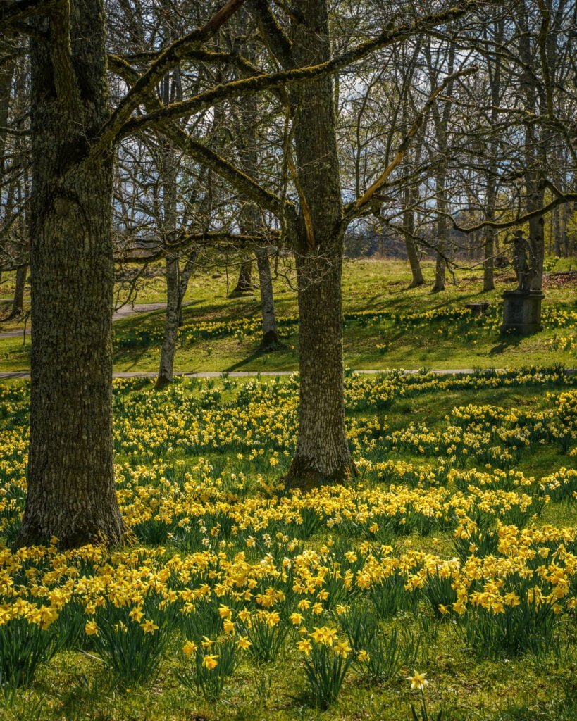 En av våra favorit utflykter är denna rundslinga på 1,5 km genom Adelsnäs herrgårds Arts and Crafts park. Framförallt på våren då påskliljorna blommar framför herrgården. Men det är en trevlig utflykt resten av året också.