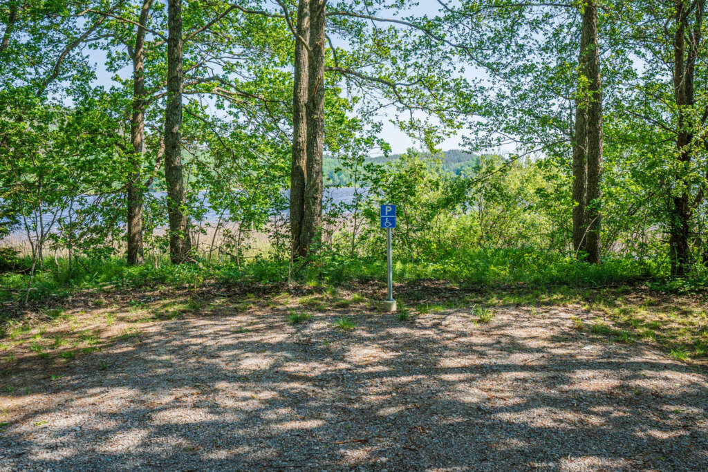 Parkeringen kommer du till via en smal väg som svänger av från E731 mellan Falerum och Ukna. Det finns en parkering för 4-5 bilar ca 100 meter från badplatsen, och en parkering för rörelsehindrade vid badplatsen.