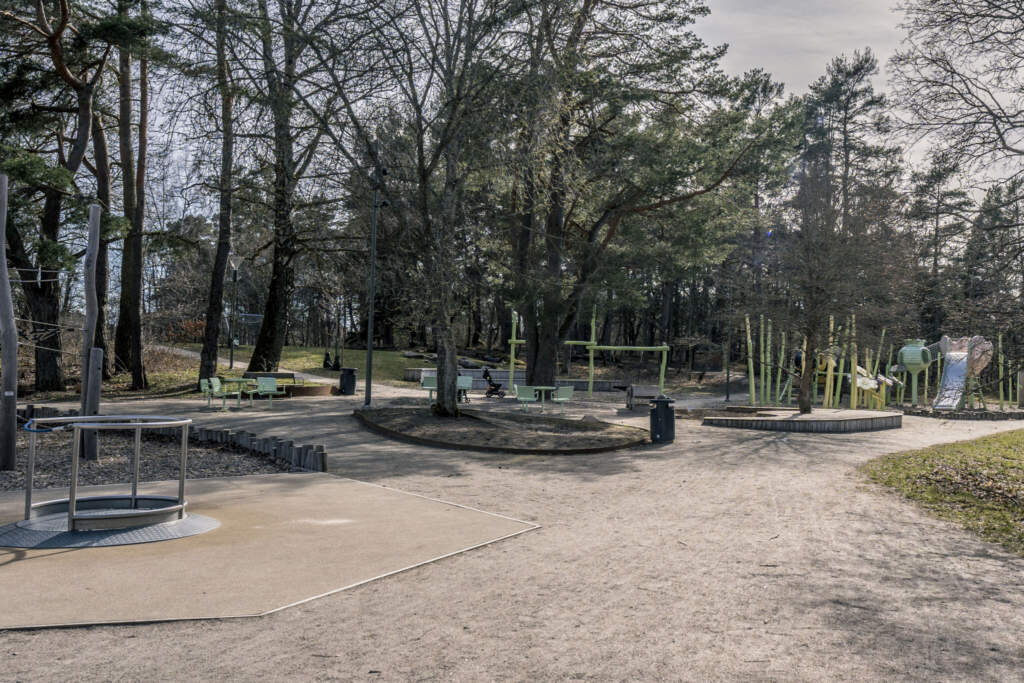 Lekplatsen ligger i ett äldre grönområde bredvid sjukhuset som är fint att promenera runt i. Passa gärna på att promenera bort till Grenadjärparken som har en fin ankdamm och massor med träsniderier att upptäcka.