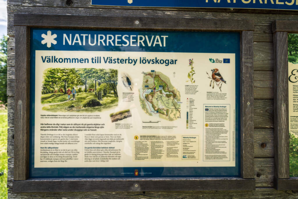 Rundslinga på 1,5 km i Västerby lövskogar genom Ekhage och betesmark ut till en grillplats vid Snårviken.