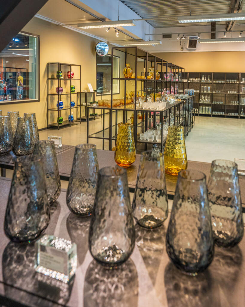 Produktionen kan du se på lite olika sätt när den är i gång, från mer oformellt i lågsäsong till guidade turer i högsäsong. Du hittar öppettider för butiken och produktionen på Reijmyre glasbruks hemsida.
