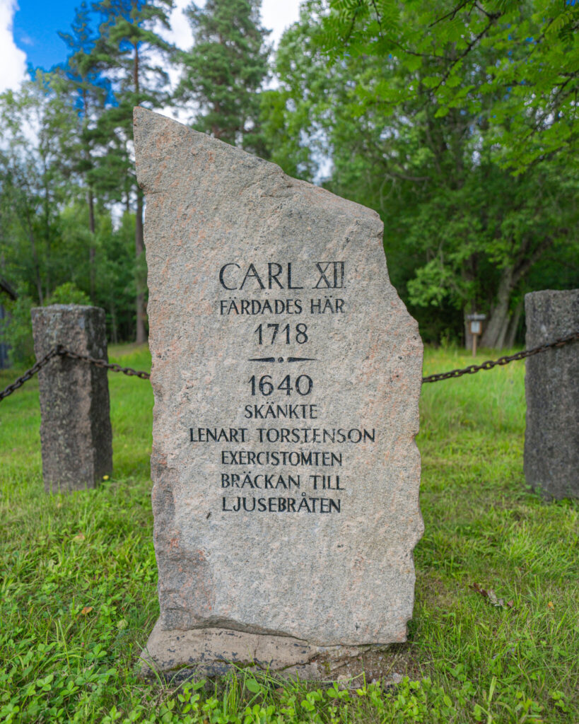 Utanför finns också en minnessten och det är här som Karl den XII väg börjar/slutar, så du kan vandra de 15 km till Dals Rostock härifrån.