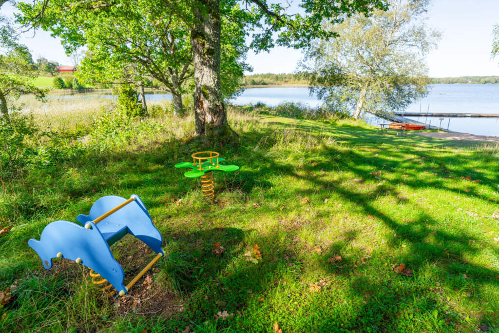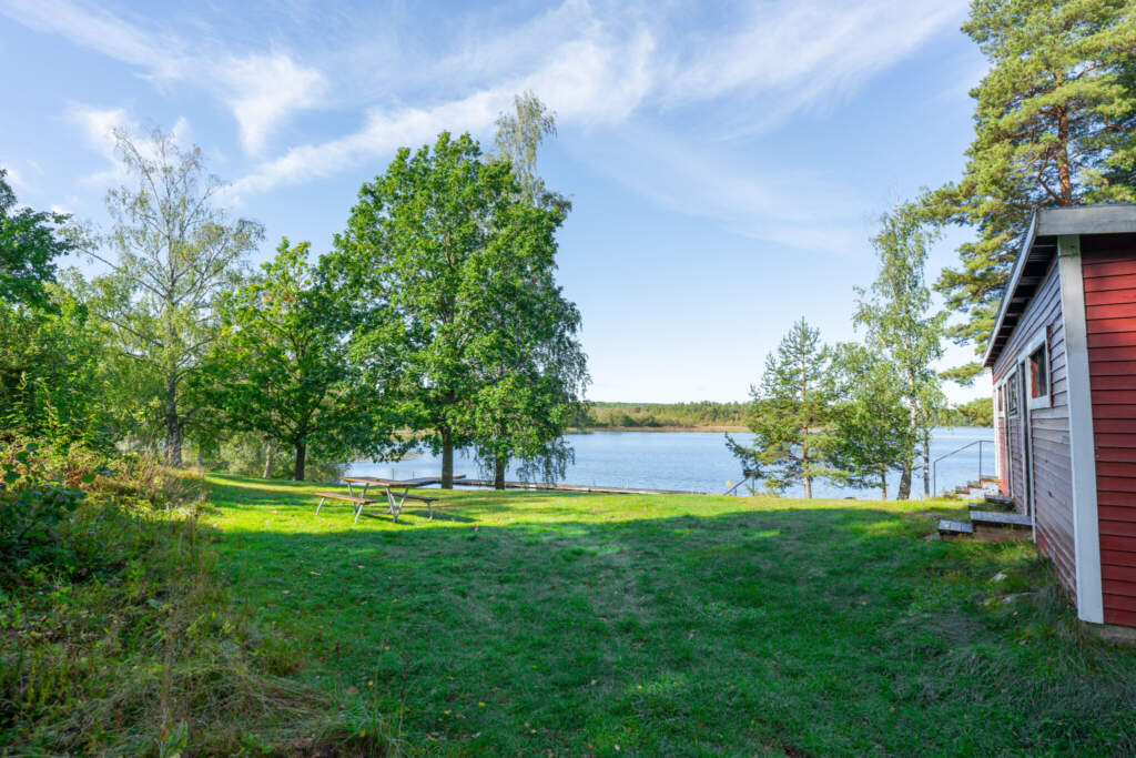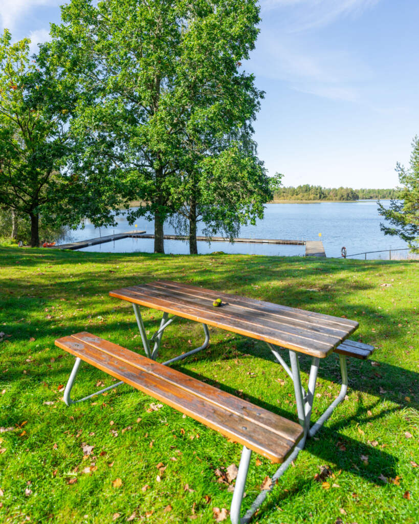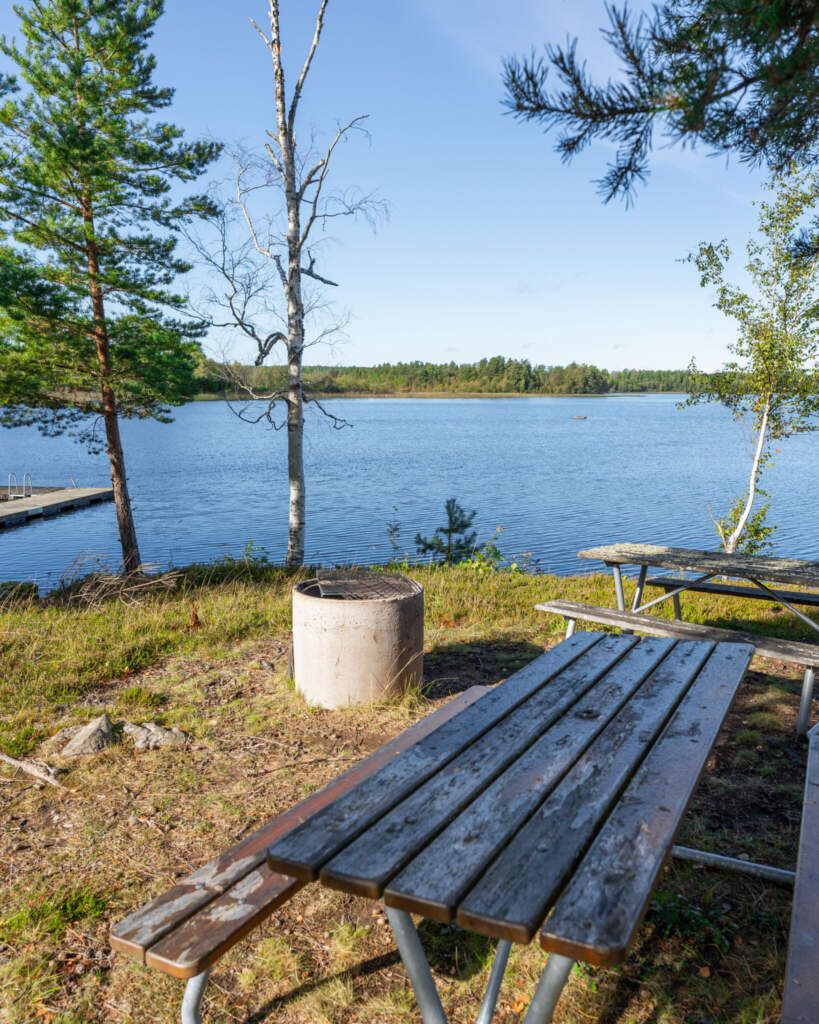 Kring badplatsen finns det flera bänkbord och en grillplats. Nära grillplatsen finns det också ett större vindskydd.
