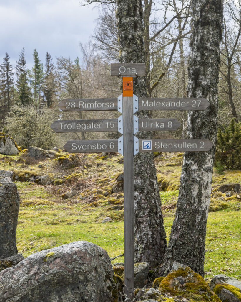 Vandring på 16 km längs grusvägar och skogsstigar mellan kulturreservatet Öna i Linköpings kommun och Trollegaters häftiga skrevor och grottor i Kinda kommun.