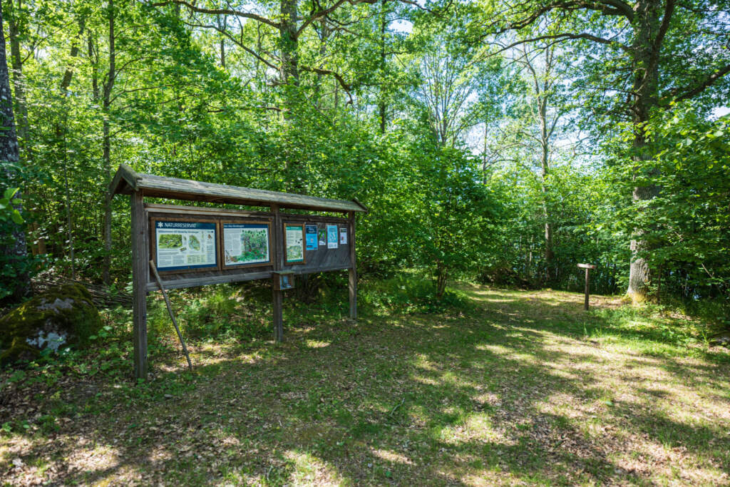 Rundslinga på 1,5 km i Västerby lövskogar genom Ekhage och betesmark ut till en grillplats vid Snårviken.