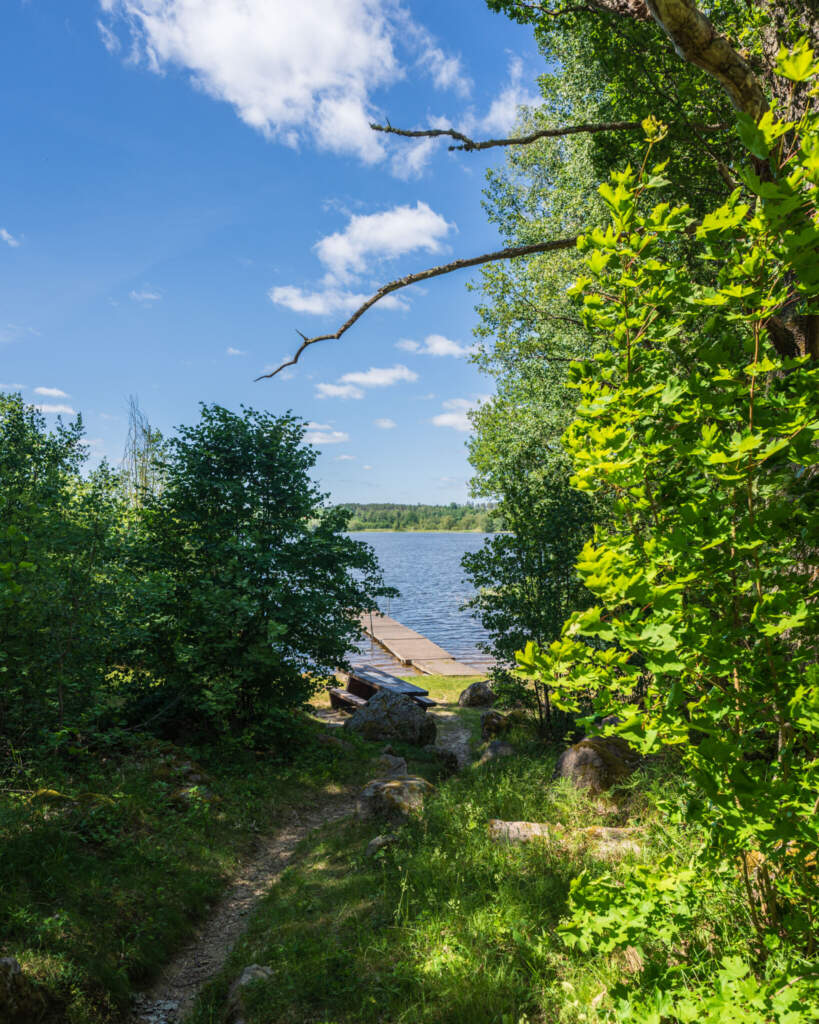 Vandringsled på nästan 2 km som börjar vid Västerbys badplats och går i skogen längs Lilla Rängens strand.